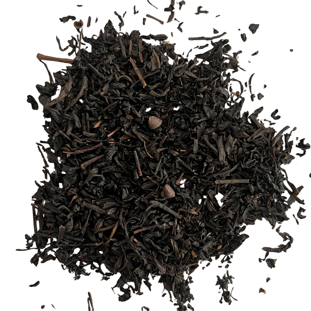A black tea scented with cherry and chocolate pieces.